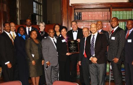 APTA Chair Flora Castillo, center, a member of the New Jersey Transit Corporation Board of Directors, was recently honored by the Transportation Diversity Council (TDC) for her efforts to strengthen public transportation’s outreach to women and minorities and for her dedication to the industry. She received the award during the TDC’s Transportation Infrastructure Summit: Focus on Sandy Recovery in New York City. Castillo is a founding board member of TDC, a national not-for-profit corporation that supports a diversified workforce of transportation and construction professionals. From left: back row, Lewis Askew Jr., Graves, Horton, Askew & Johns, LLC; Luis Lugo, the PACO Group; Jeffrey Smalls, Smalls Electrical Construction Inc.; Connie Crawford, the Louis Berger Group; Maria Lugo, I.A.M. Supplies; Jim Harding Jr., former member, MTA Board of Directors; Herman Ross II, National Insurance Consultants Inc.; and Eugene Hucks and Tracy Bowdwin, MTA New York City Transit; front row, Thalia Panton, MTA New York City Transit; Stephanie Dawson, Port Authority of New York and New Jersey; TDC President and CEO Dwayne C. Sampson; Castillo; Mysore Nagaraja, Spartan Solutions; and Keith Paris, Westchester County Department of Public Works and Transportation. |